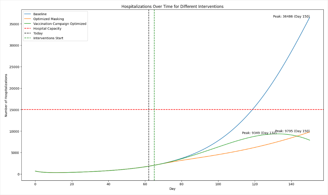 - In a separate data transformation, plots hospitalizations for each intervention over time.