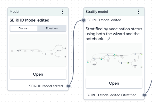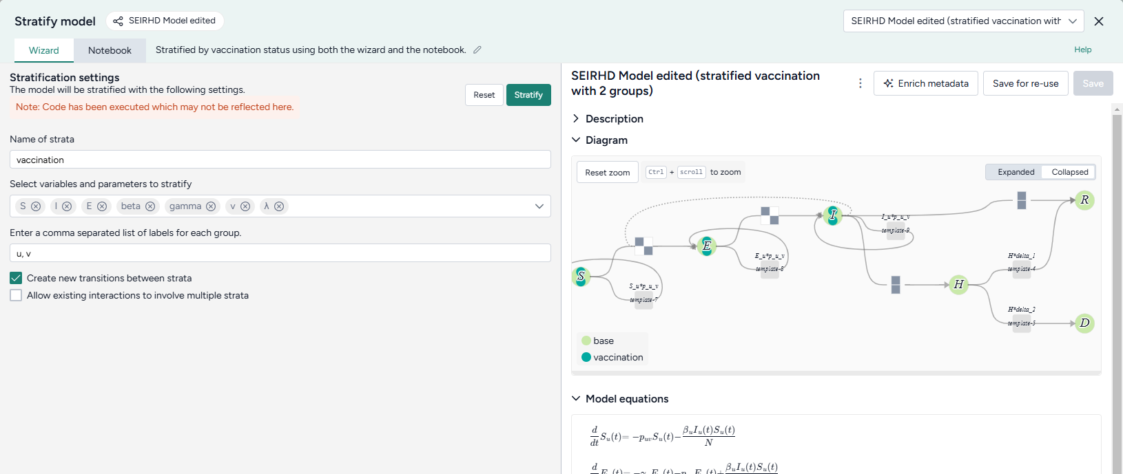 Now we want to stratify our edited model to account for vaccinated and unvaccinated groups. Terarium's stratification process is an error-proof approach to stratifying along any dimension, such as age, sex, and location.