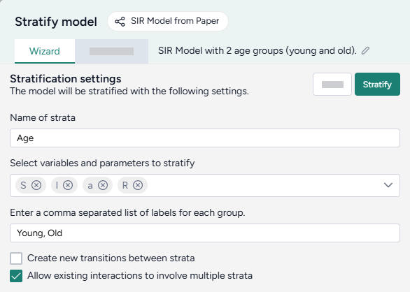 Select the model variables and parameters you want to stratify.